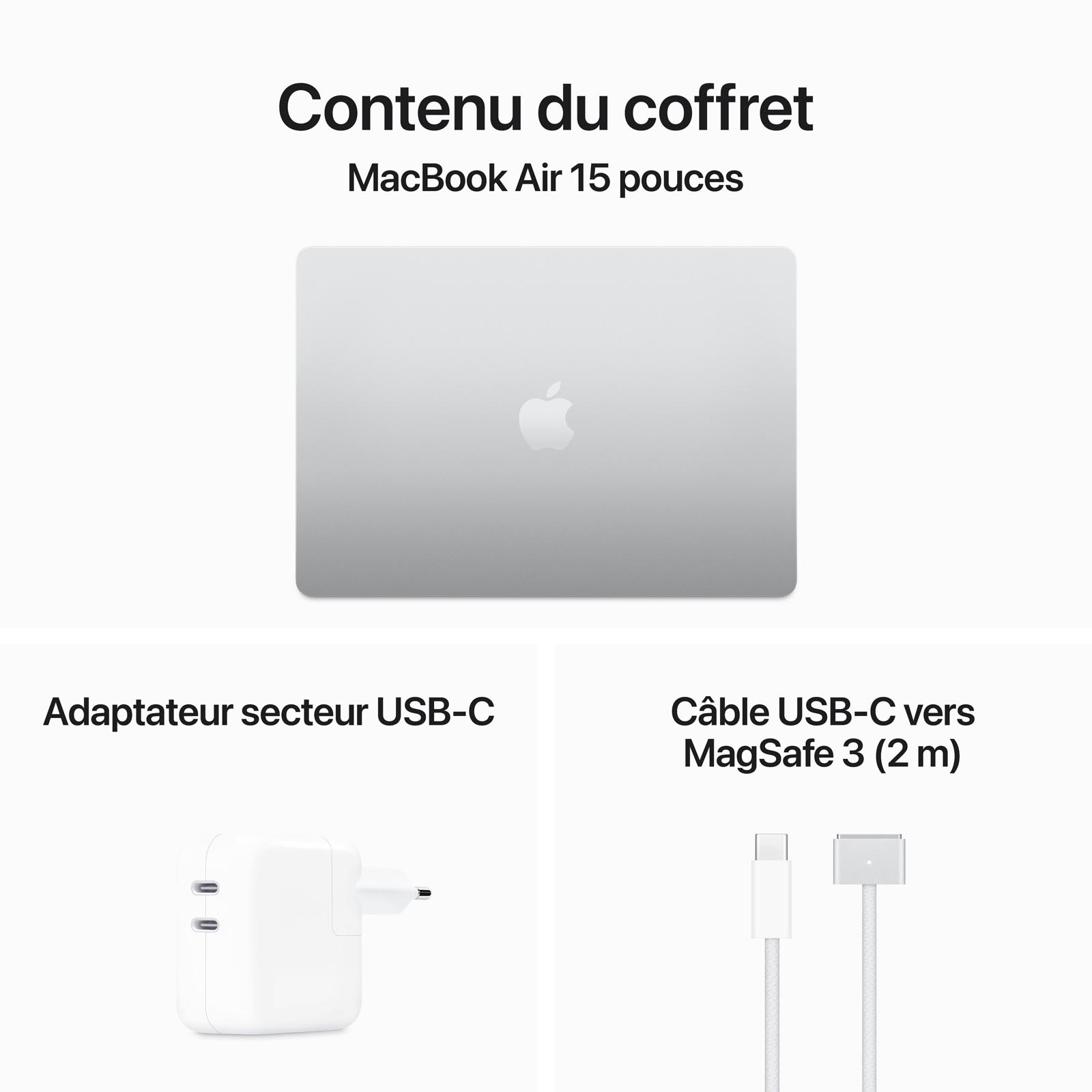 Apple MacBook Air M3 15 pouces (2024) Argent 16 Go/256 Go (MC9E4FN/A) |